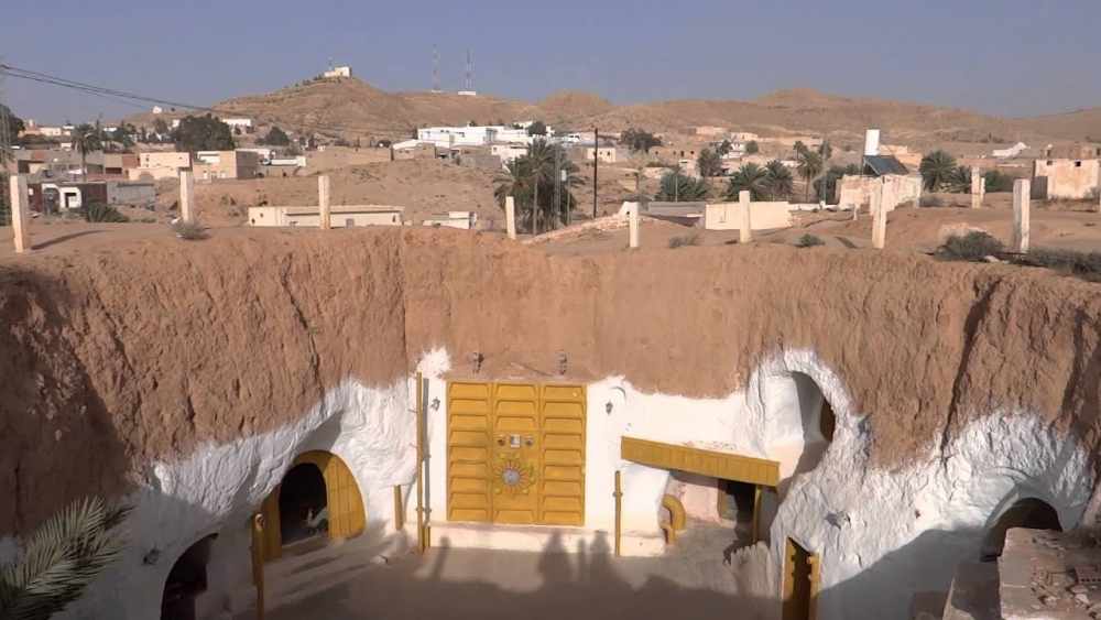 В поселении Матмата, где до сих пор проживает кочевой народ, дома вырыты в скалах. Это древний способ спасения от зноя и песчаных бурь.