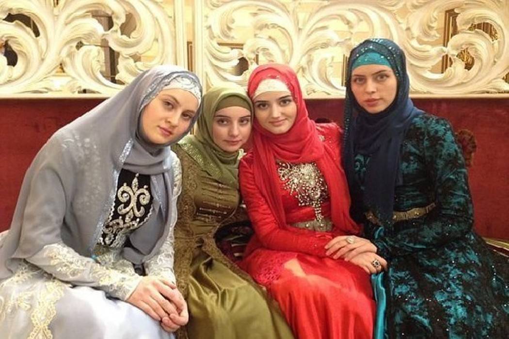 В Чечне принято, чтобы свадебное платье было длиной в пол, с закрытыми рукавами и горлом, на голову повязывают платок.