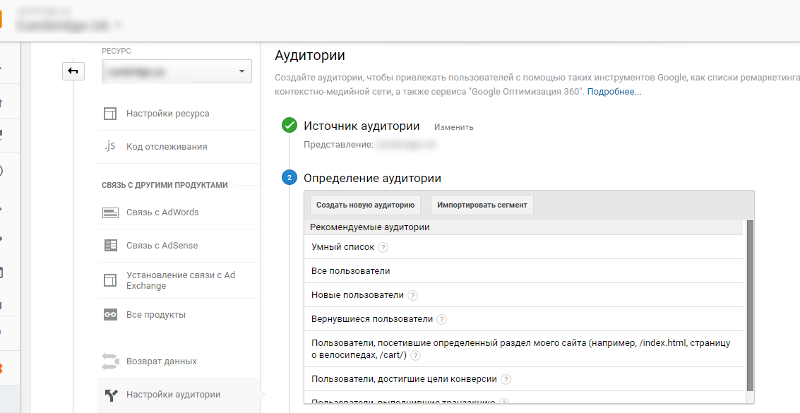 Открывается окно с уже доступными сегментами, которые мы можем использовать.