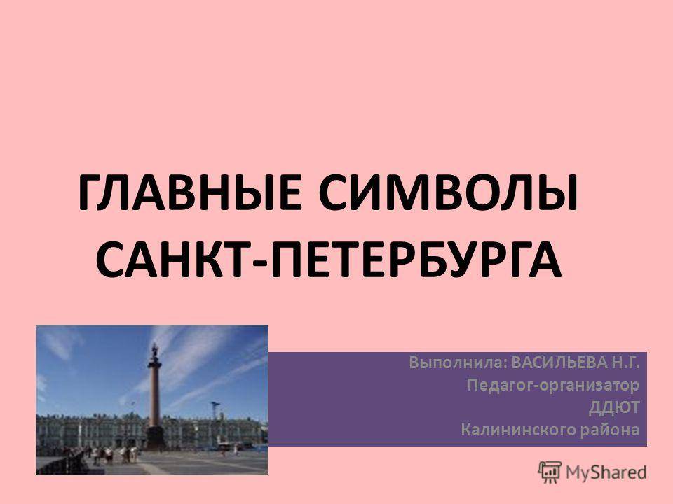 Презентация на тему: ” ГЛАВНЫЕ СИМВОЛЫ САНКТ-ПЕТЕРБУРГА Выполнила: ВАСИЛЬЕВА Н.Г. Педагог-организатор ДДЮТ Калининского района.” — Транскрипт: