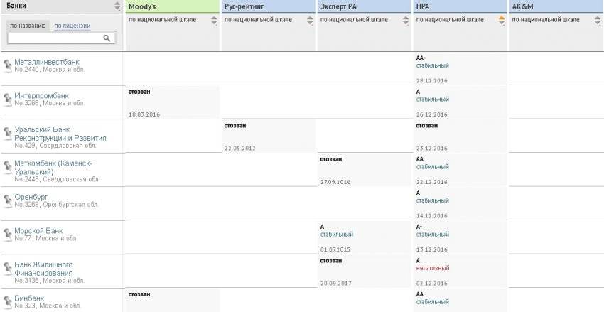 Если раньше мы могли сравнивать банки по рейтингам Fitch, Moodys и т.п., то теперь стоит обращать внимание только на оценки национальных экспертных агентств – «Эксперт РА», НРА (Национальное рейтинговое агентство), Рус Рейтинг, АК&M