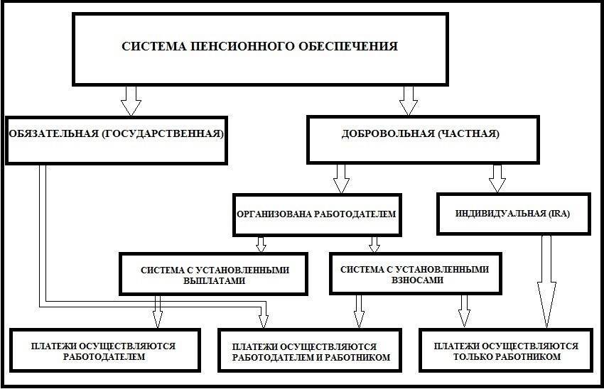 Американская пенсионная система многосоставная. Она включает в первую очередь: государственное и частное пенсионное обеспечение. Стандартная пенсия в США содержит несколько компонентов: