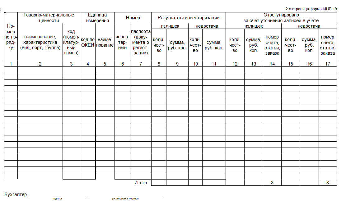 ВАЖНО! Форма ИНВ-19 предполагает двустороннюю печать в 2 экземплярах. В нашем примере страница №1 — это лицевая сторона, а страница №2 — обратная