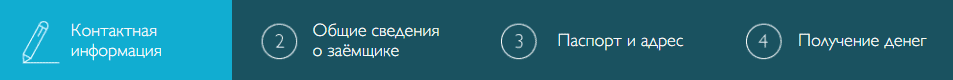 1. В разделе «Контактная информация» необходимо указать фамилию, имя, отчество, пол и дату рождения. Также потребуется указать цель займа, выбрав ее в выпадающем меню. Если ни одна из предложенных целей не подходит, следует указать пункт «Другое». Дале нужно указать номер телефона и электронный адрес.