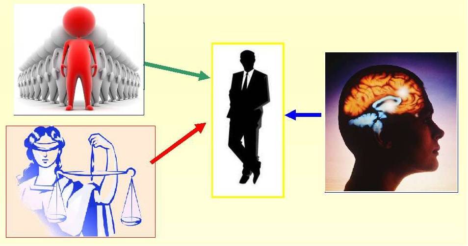Контроль за тем, чтобы личность следовала социальным нормам, осуществляет государство (с помощью закона), общество (с помощью неформальных санкций) и сам человек (с помощью своих убеждений и совести)