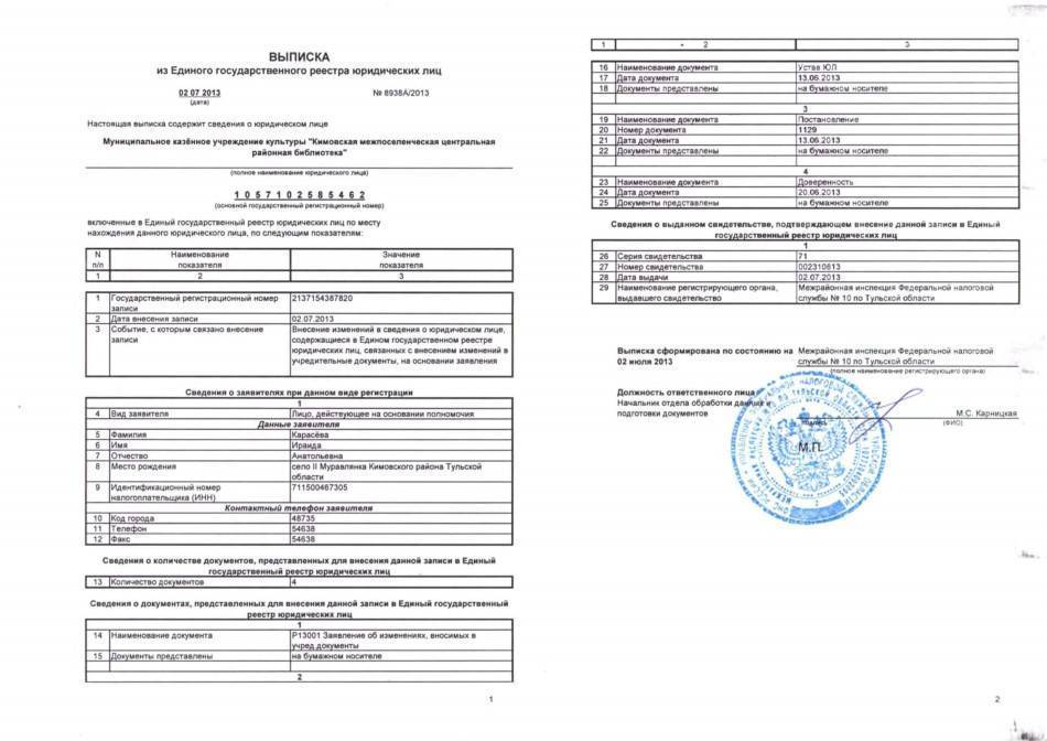 Официальная выписка из ЕГРЮЛ