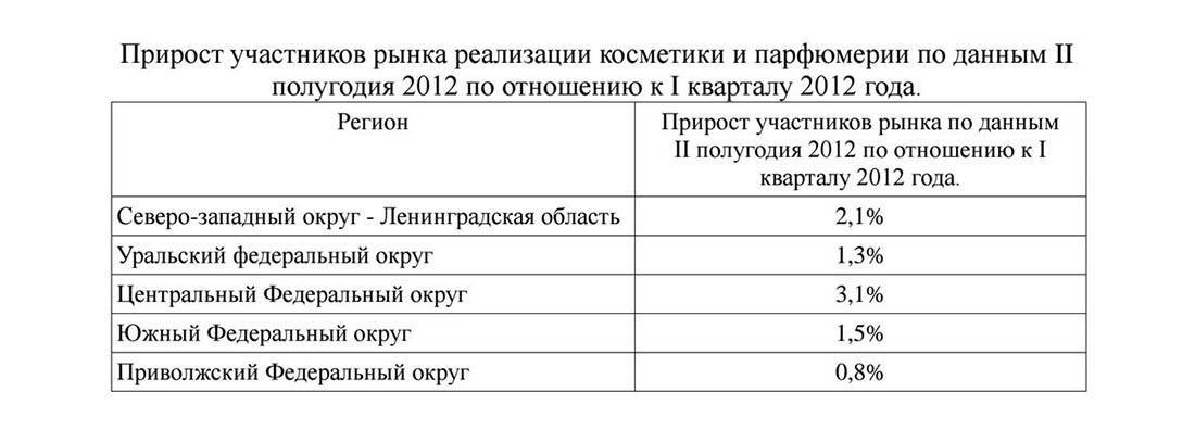 Таблица №2. Прирост участников рынка косметики в России