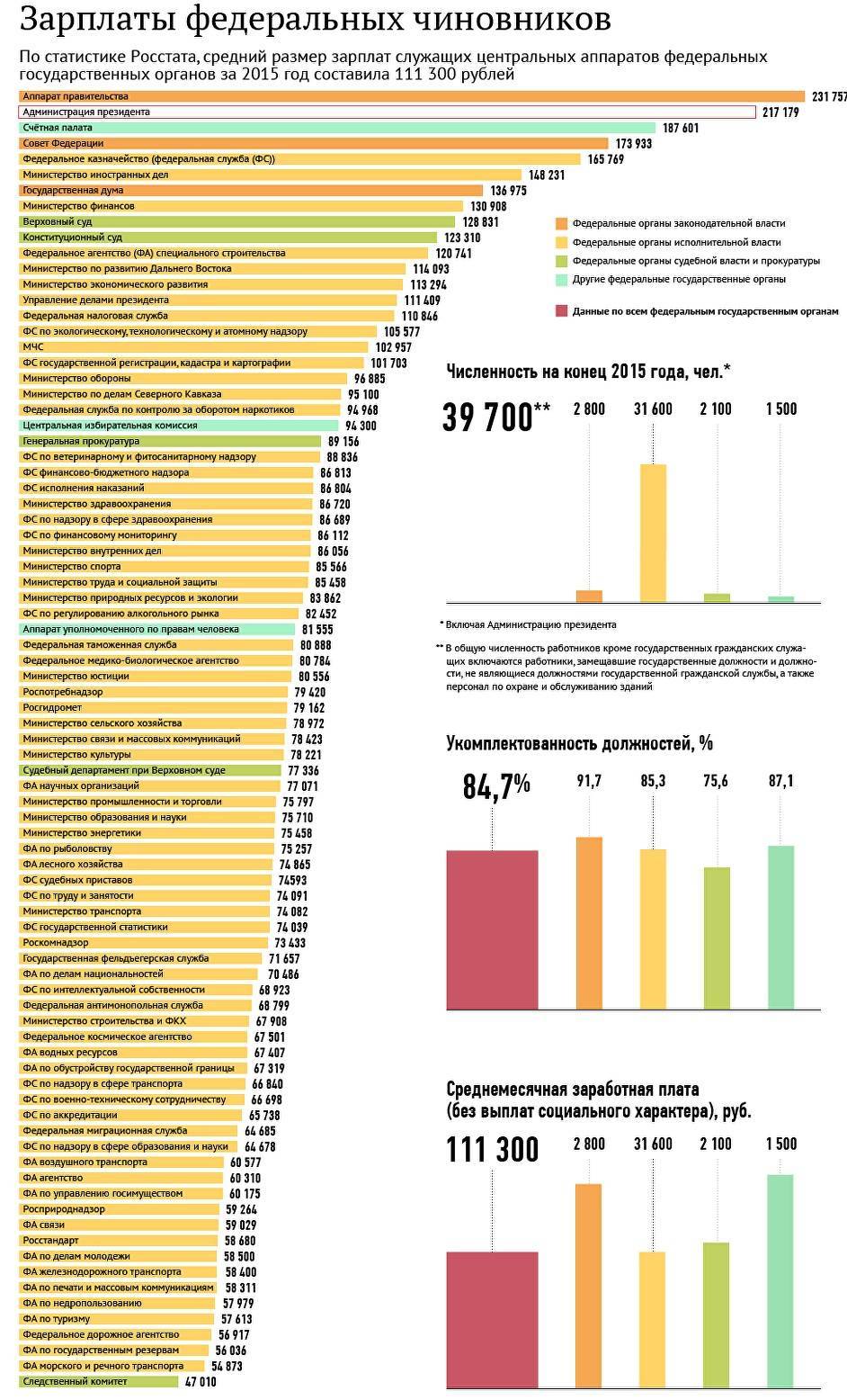 По данным Росстата, выше всего оклады у госслужащих, работающих в отдаленных северных регионах. Меньше всех получают те, кто проживает в центральных и западных регионах.