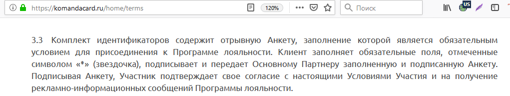 - Через сайт командакард.ру. Производим вход в личный кабинет и заполняем все поля: