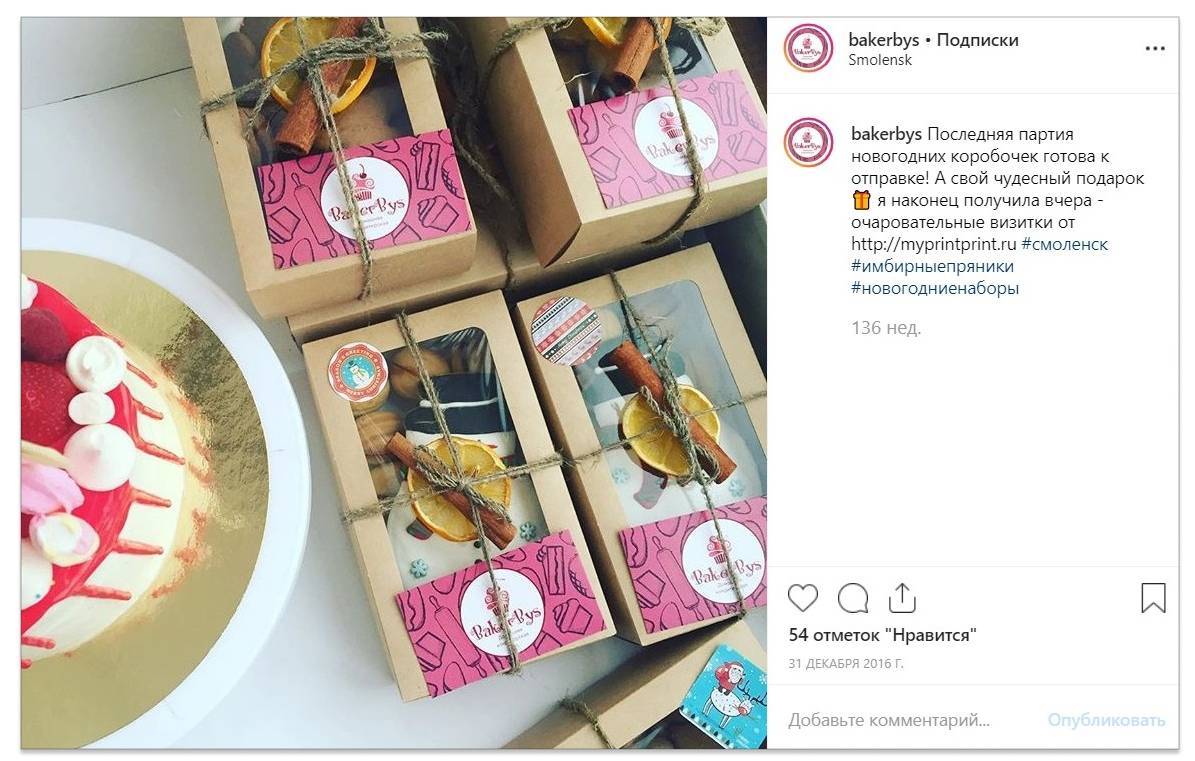 Домашняя кондитерская BakerBys позаботилась о том, что выделиться. Единый стиль визиток и логотипа, handmade-упаковка создают особое отношение даже к маленькому бренду