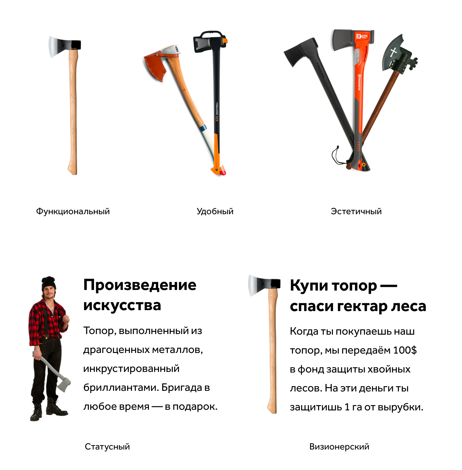 Пройдёмся по ступенькам пирамиды потребностей на примере простого топора.