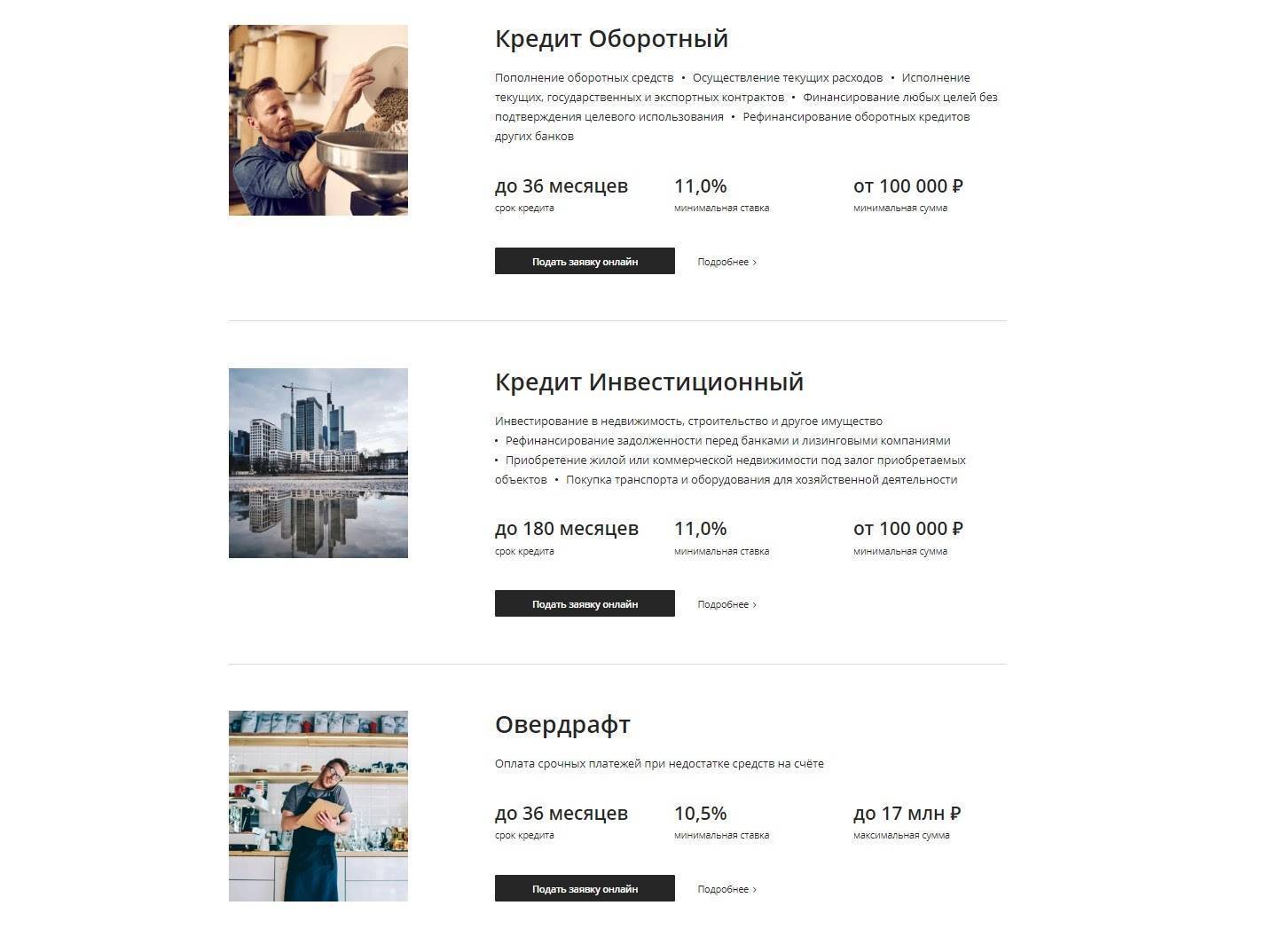 | Крупные суммы – до 5 000000 руб. | Минимальный срок кредитов – 3 года |