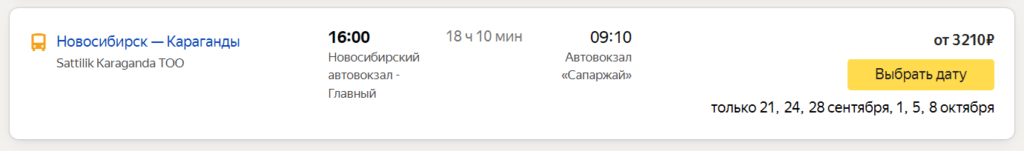 Есть рейсовые автобусы, например, из Новосибирска в Караганду. Стоимость за 17 часов пути составит 3 210 рублей.
