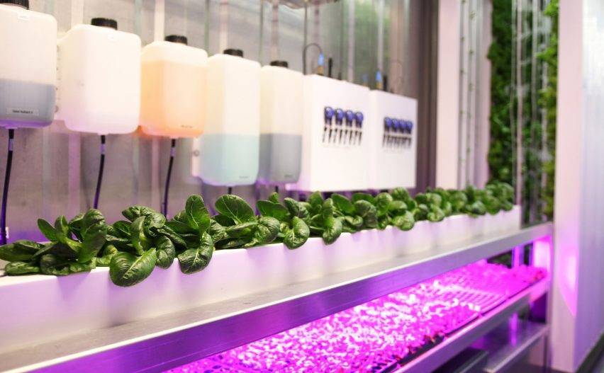 Стартап Freight Farm позволяет выращивать сельскохозяйственные культуры внутри транспортных контейнеров. Компании удалось внедрить гидропонную систему выращивания растений под названием “Leafy Green Machine” в компактный контейнер. При обычной методике выращивания на все это хозяйство ушло бы целых два акра земли (0,81 гектара). Здесь же растения выращиваются на небольшой площади, с помощью встроенных светодиодных ламп, а вертикальные гидропонные системы питают их богатыми минеральными растворами.