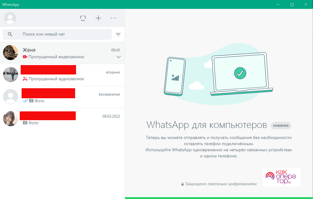 - Далее мессенджеры на ПК и смартфоне автоматически синхронизируются между собой, что позволит вести переписку, осуществлять аудио звонки и видеовызовы в Ватсап с ПК.