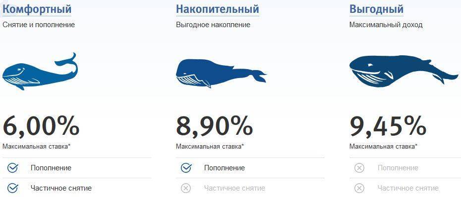 Ставки по процентам также отличаются для каждого предлагаемого вклада.