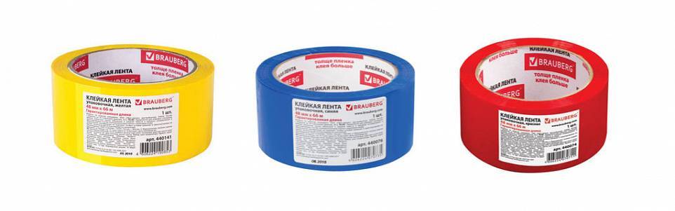 Производители выпускают разные цвета клейкой ленты (желтый, красный, зеленый, синий, коричневый или тонированный). Упаковка с помощью цветного скотча помогает:
